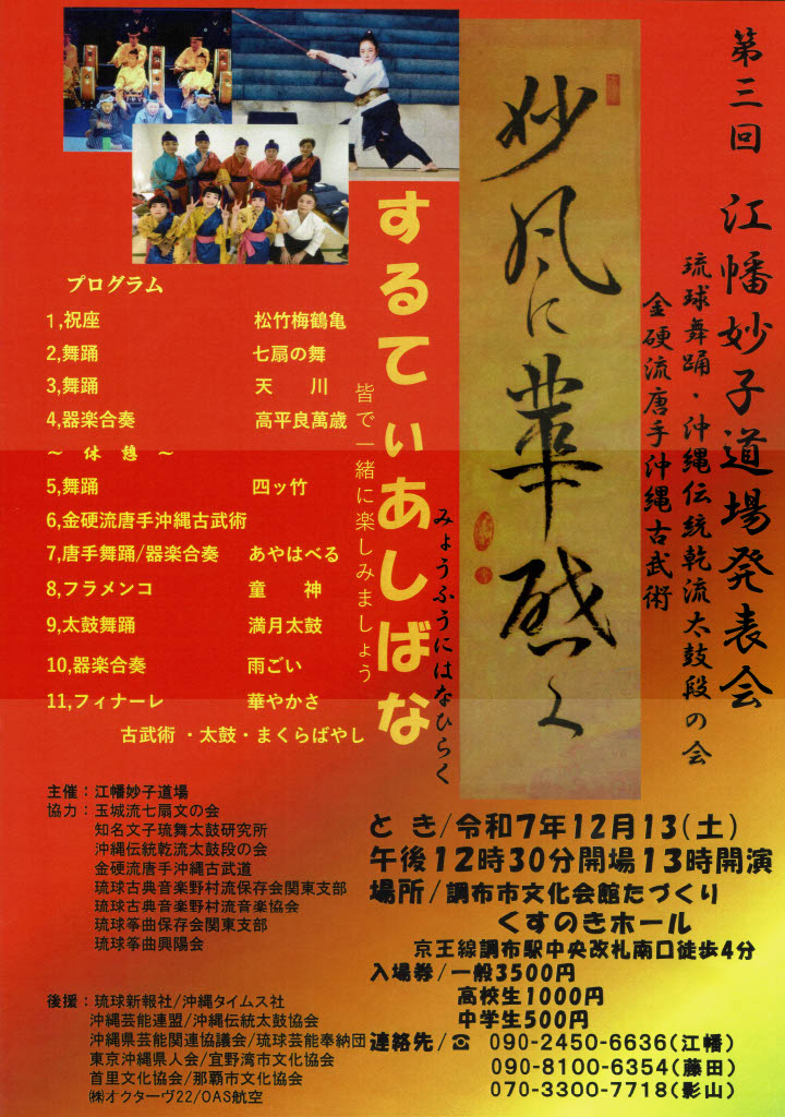 12/13(土)、「第三回江幡妙子道場発表会:妙風に華啓く」公演が調布市くすのきホールにて開催されます。